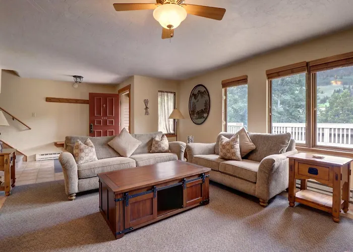 The 93 m² Ten Mile Haus A-6 2Br 2Ba Condo Copper Mountain is located in a mountainous part of Copper Mountain, approximately a 5-minute walk from the large Copper Mountain Ski Resort. Providing a hot tub, the apartment is situated right around the corner from Gem.